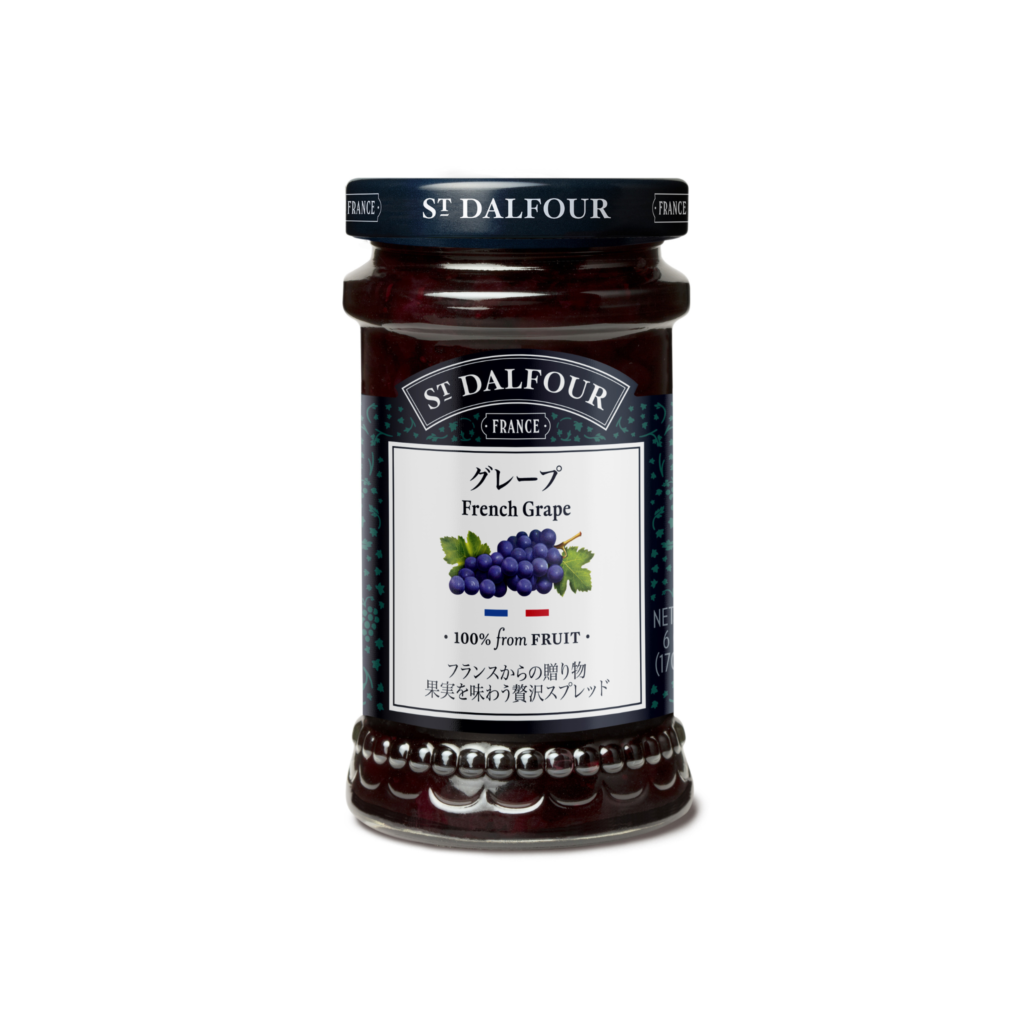 第一次世界大戦中、砂糖は高価なものでした。当時、サン・ダルフォー社創業者のおばあさんは砂糖の代わりに“ぶどう濃縮果汁”を使って、“元祖フルーツ100%スプレッド”を生み出しました。これが「サン・ダルフォー ジャム」の原型です。サン・ダルフォー社は、世界で初めて味・香りを取り除いた特殊な濃縮ぶどう果汁をジャムに採用したブランドです。