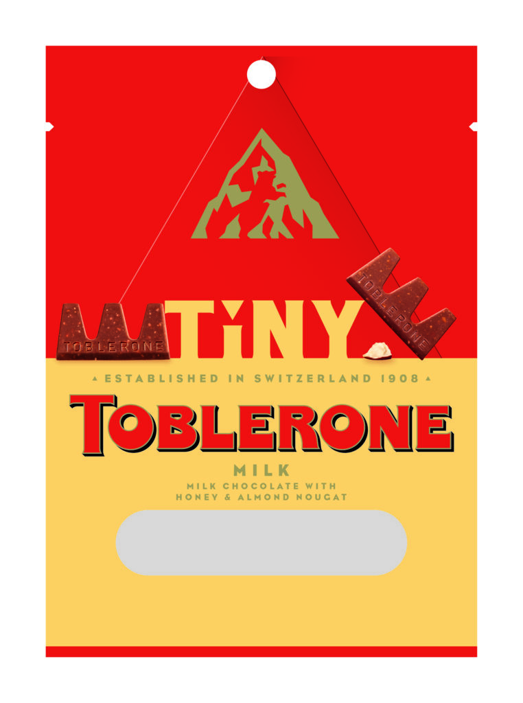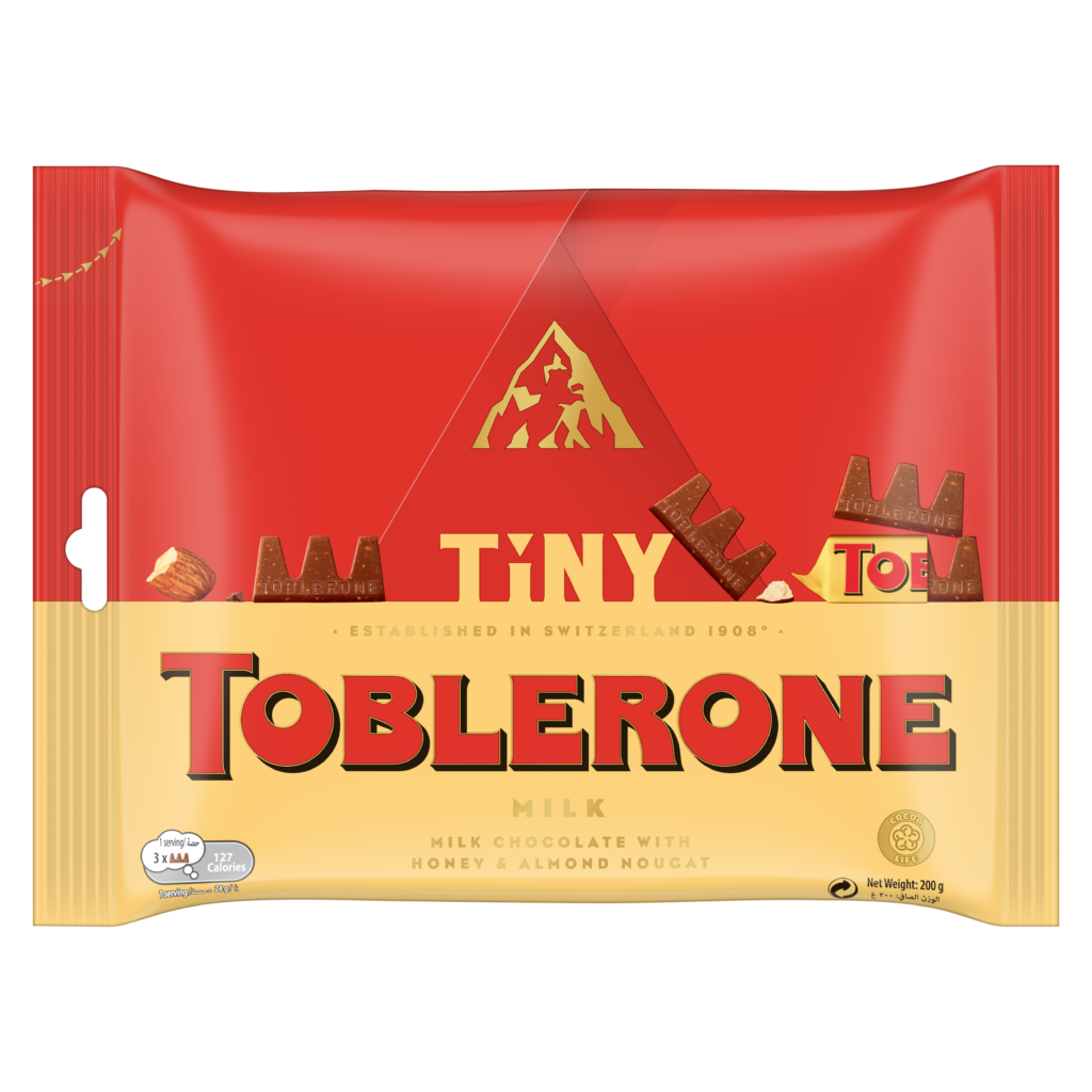 トブラローネ タイニー・ミルクバッグ 200gマッターホルンをかたどった三角のミルクチョコレート。みんなでシェアできる小袋サイズ。