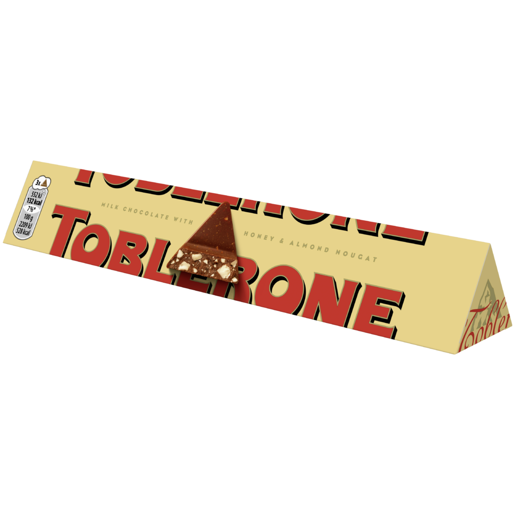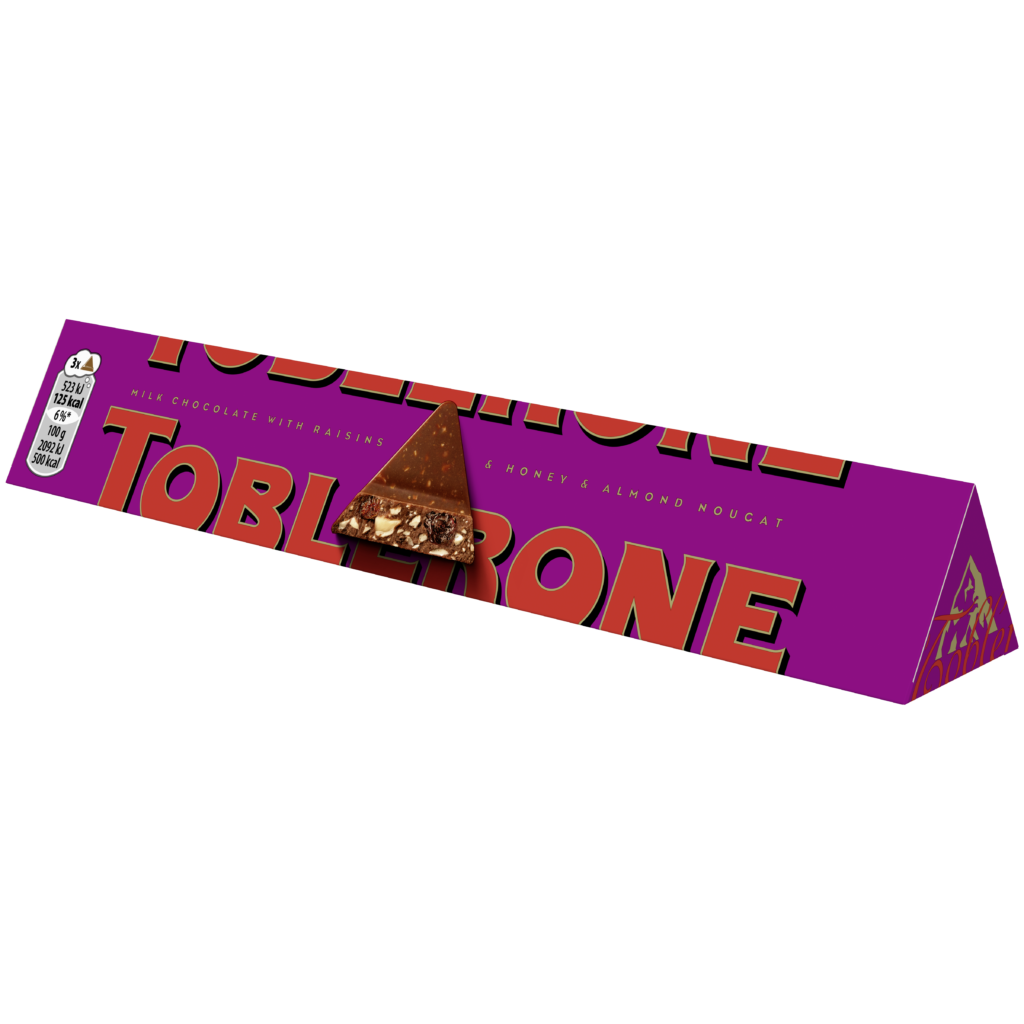 「トブラローネ」は創始者・トブラー一家が1908年に発売し、現在はモンデリーズ・インターナショナル(Mondelez International)が保有するブランドです。マッターホルンをかたどったユニークな三角形のハチミツヌガー入りのチョコレートで、旅行のお土産やギフトとして高い支持を得ています。